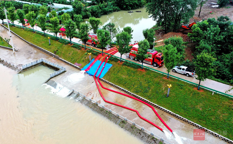 為保障兩岸群眾生命財產安全, 6月28日下午起,兩臺“龍吸水”開始工作,每臺每小時可排水3000立方米。