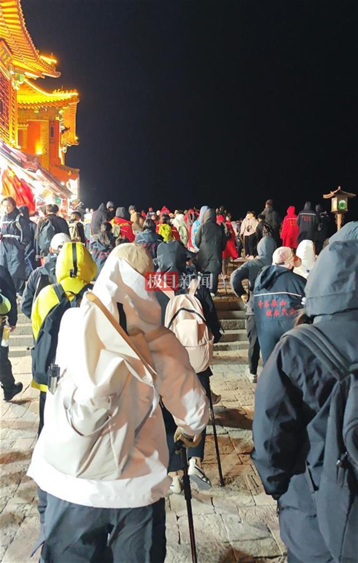 玉皇廟位于海拔1545米的泰山之巔,盡管寒風呼嘯,游客熱情高漲,迎接著即將到來的日出勝景。