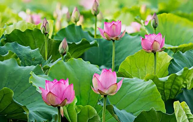 湖邊,水如明鏡。藍天白云倒映其中,明凈而靜謐。湖中水草肥美,凝神注目,魚兒在水中嬉戲玩鬧,往來翕忽。循著清香襲來的方向,在滿湖的蓮葉與荷花之下,泛起菱角片片。不遠處的湖面上,成群的烏鬢鵝悠然戲水,間或拍打著灰白色的翅膀從頭頂悠然而過。