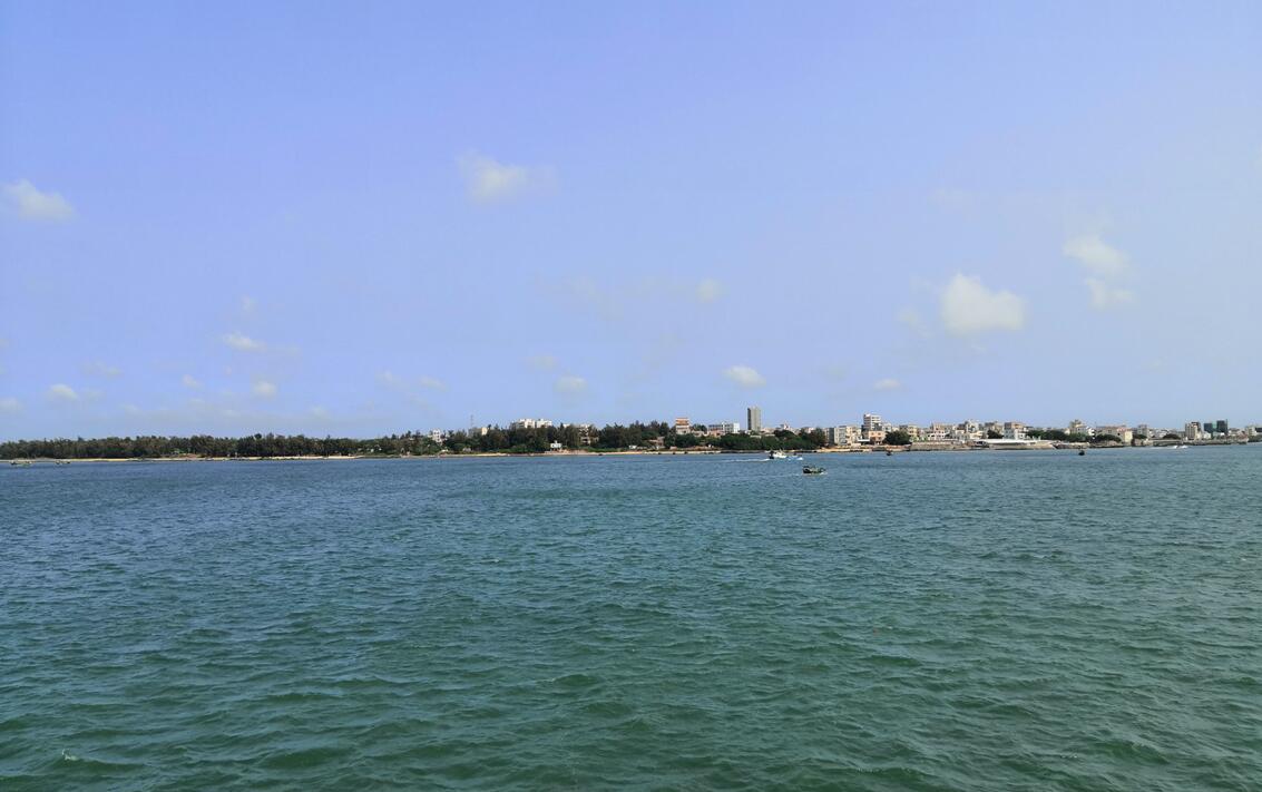 硇洲島是一座島外島。開車過跨海大橋先進入東海島,這是廣東最大的島嶼,面積近300平方公里,寶武鋼鐵集團在這個島上建有基地。車行半個小時左右,就到了東海島碼頭,再從碼頭上滾裝輪渡,大約二十多分鐘就到硇洲島了。