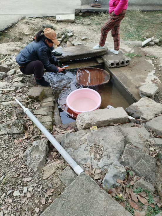 這么說來,整條白石港完全杜絕了生活生產污水的污染。難怪經過下灣村口時,我們看到一口有村民正在洗刷筲箕的水井,見井水清澈透底,波光微晃,我不禁下車攝下了這小山村鄉愁的眼睛。