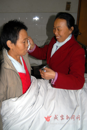 在醫院照顧受傷的同事。