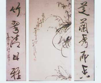 近日筆者在一藏友處偶見一幅陳海瀛先生的墨寶——蘭石圖及對聯一副。中堂畫為四尺整紙,對聯為四尺對開。畫中幽蘭翠竹生于石間,清新淡雅,并附詩一首:“蘭薰本是草,開花便不同,時香十里遠,沁人肺腑中。”其章法錯落有致,別出心裁,字體為行草書,與畫面相得益彰,令人賞心悅目。落款為:“壬申年桂月,海瀛塗”,并鈐印兩方,均為朱文。對聯內容顯然為畫所生,題曰:“芝蘭秀而香,竹翠清且雅。”落款為壬申年桂月,海瀛書,下鈐海瀛先生號“說洲”朱文印一方及朱文“陳海瀛”印一枚。該幅作品創作于1932年秋,縱觀整幅作品,筆法洗練,用筆嫻熟,灑脫不拘,飄逸自若,其虛實相間,濃淡有致,圖文并茂,法度森嚴。對聯與中堂渾然一體,字中有畫,畫中有字,書法嫵媚而不失蒼勁,竹蘭秀美而不失骨力。給人以典雅清麗,神采飛揚之感。此墨寶應為海瀛先生傳世之精品也!
