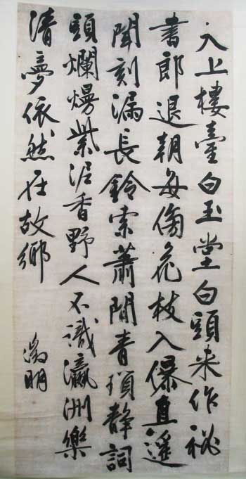 文徵明行書軸《內直有感》, 紙本行書立軸大堂,縱245厘米,橫113厘米(上圖),為文徵明罕有的大字行書,國家一級文物,現藏于德清縣博物館。