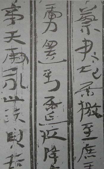 漢代草書寫于竹片或木片上,稱竹簡或木簡,因而其書寫流暢、運筆自然。由于趨簡求快,故將筆畫與筆畫連帶或省減,又將毛筆上下提按,捺筆收尾翹起,帶有隸書影子,簡約靈動卻不簡單呆板。