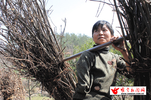 為種好2畝多責任田地。插秧時,她用殘臂和右膝夾緊秧苗,半跪在田里,扯秧栽田;鋤地時,她用左手甩著短把鋤頭,挖地鋤草。最難的是割谷、合谷、捆谷這些收獲季節的農活。挑谷頭的時候,她把整個身體側躺在地上,左手撐地,右臂荷擔,一寸寸站立,一步步挪動。干完一天農活,她回家還要擔水、洗衣、做飯、種菜、喂豬。