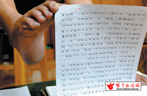 劉細(xì)谷的雙腳靈活自如,能寫一“手”好字