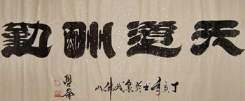 載歌載舞,迎千秋難逢之勝日;感恩感德,圓萬載騰飛之國夢。光彩大道,龍驤工業園區之壯景;中津華衢,虎步崇邑雄企之國風。感賦三角洲,爰引九洲興。