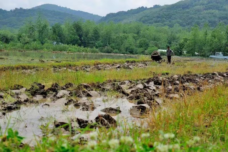 舉目遠眺,農田里,農人們正在播種耕耘,只見不少身穿雨衣,手揚牛鞭的農人,一手扶著犁耙,或唱著悠揚的山歌,或吆喝著趕牛的號子,用勤勞的腳步丈量著腳下豐腴的土地;用心中的夢想,在廣袤的大地上譜寫著人生的輝煌;用豪放的情懷,吟哦岀一行行動聽的詩句。