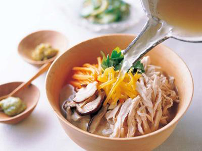 茶泡飯,指的是用茶水泡米飯,在中國南方地區,通常用熱茶水來泡冷飯,即為茶泡飯。《紅樓夢》第四十九回“琉璃世界白雪紅梅...