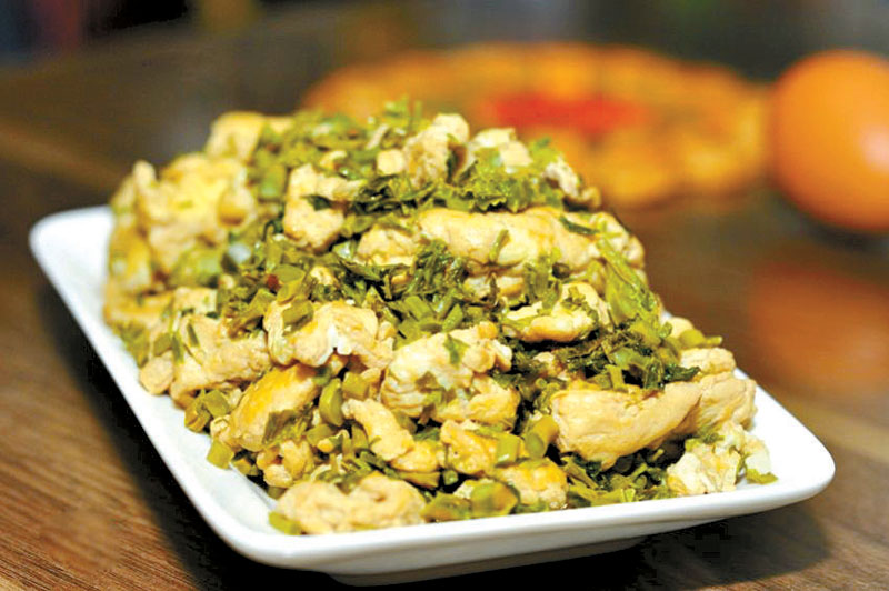 小時候喜歡春天,是因為春到天暖,不再縮手縮腳,令人欣悅。每到三月,菜地里的菜開始瘋長,最常見又招人喜歡的便是菜苔。陽光照耀幾日,一株株青菜就抽出苔來,主干生出分枝,枝頭的頂部有密集的花蕾,看著讓人心生歡喜。用鐮刀割上半籃回家,掐成段,洗凈,瀝干,倒進熱油鍋里,灑點鹽炒幾炒,就可以起鍋裝盤。碧綠的菜苔帶著春的氣息直往鼻腔鉆,菜苔甜美的滋味便在唇齒間蔓延。這是春天最美的味道,餐餐吃都不膩,還能填飽肚子。當然,菜園里還有韭菜、生菜、洋白菜、紫貝菜可以吃,這些菜也都是美味。