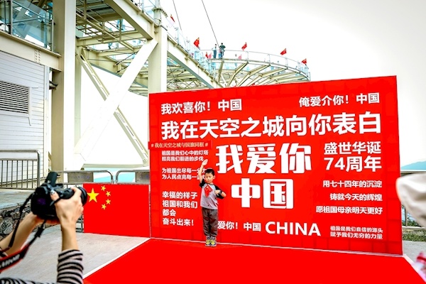 長假第二天,游客打卡“天空之鏡”“我愛你,中國”主題氛圍布展吸引小朋友向祖國表白景區游客絡繹不絕? ? ?通訊員供圖□...