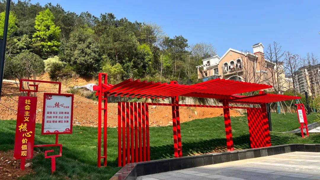 3月28日,天氣晴好,在位于銀泉大道的青龍山公園東入口,記者看到,工程主體已經基本完成,正在進行收尾工作。東入口依山勢而建,如階梯分布。底層為雨水花園,中層為小廣場,上層為游廊和登山步道,自然過渡與公園銜接。一眼望去,新鋪的草坪厚實柔軟、綠意盎然,幾棵老樟樹矗立在廣場邊,樹冠如蓋,紅色的游廊在滿眼綠色中分外醒目。