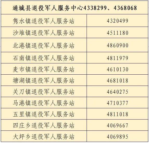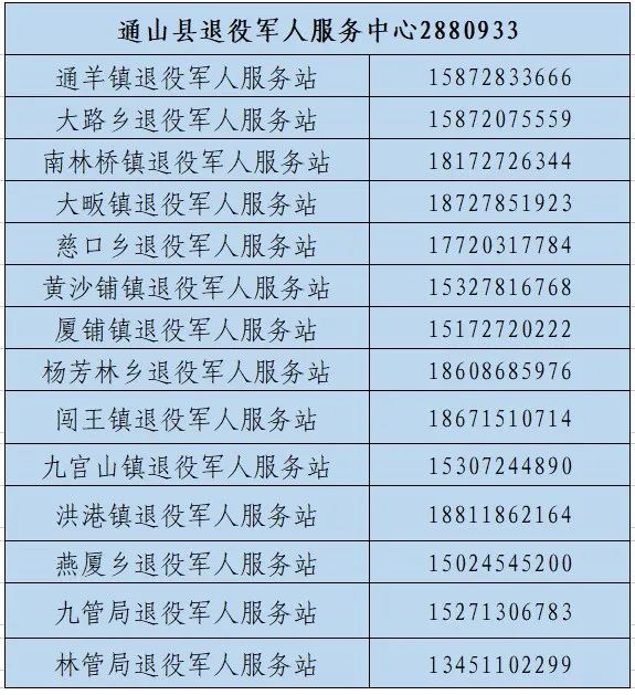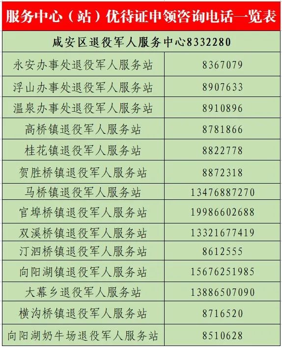 服務(wù)中心(站)優(yōu)待證申領(lǐng)咨詢電話一覽表?