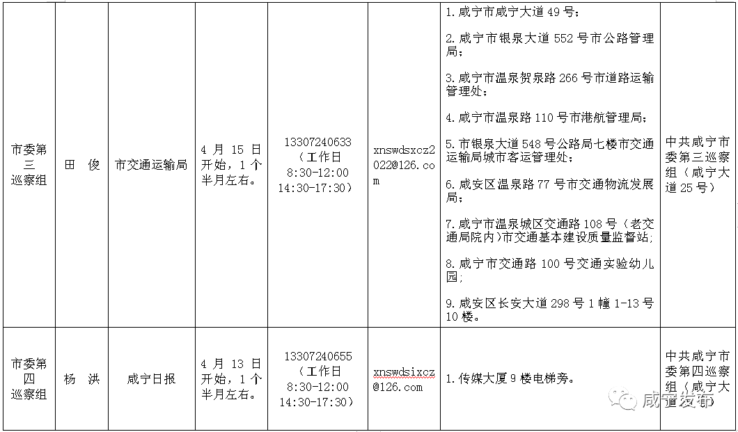 市委巡察組將在被巡察單位工作1個半月左右。為便于干部群眾反映情況,巡察期間設聯系電話、電子信箱、意見箱,主要受理關于被巡察單位領導班子及其成員、內設科室及下屬單位負責人和重要崗位干部問題的舉報和反映,重點內容是反映以上被巡察對象違反“六項紀律”等方面的情況。