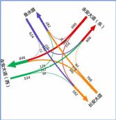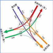 1.早晚高峰交叉口流量特征相似。永安大道早高峰東西車流量較大,西往東為(649pcu/h),東往西為(876pcu/h)。