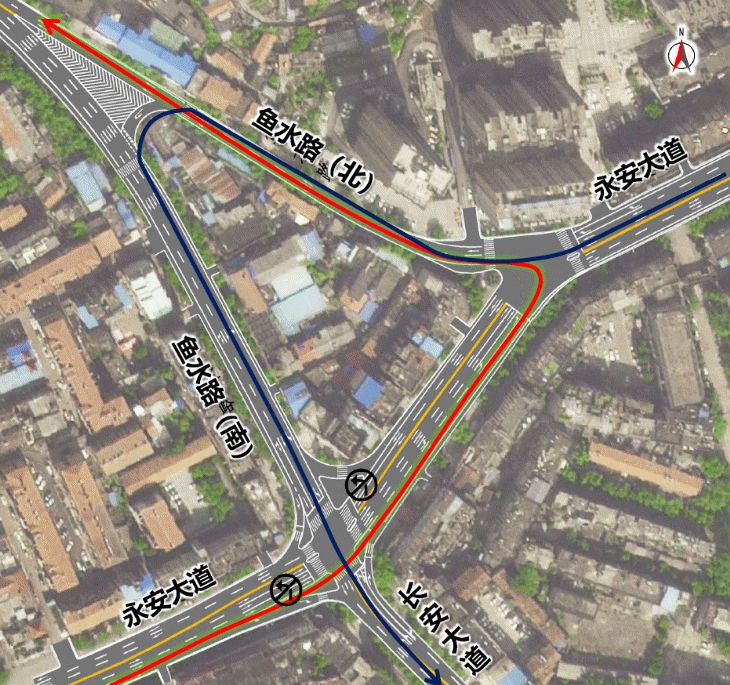 措施5 永安大道-魚水路(北)交叉口增設信號燈控,規范交通組織,周邊取消停車。