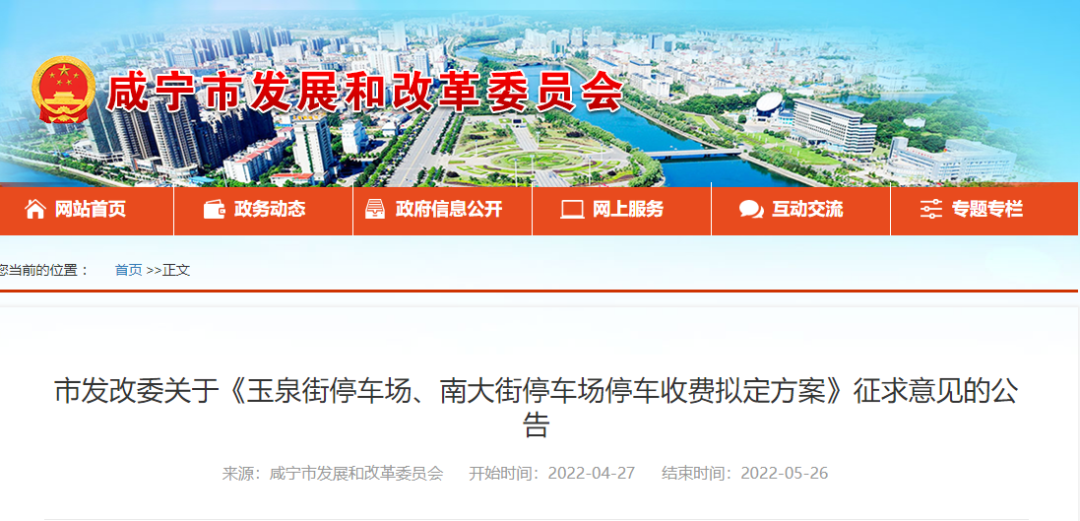 咸寧市玉泉街停車場、南大街停車場停車收費(fèi)擬定方案(征求意見稿)