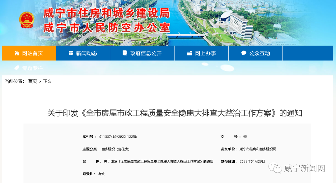 咸寧市住房和城鄉(xiāng)建設(shè)局網(wǎng)站4月29日消息: