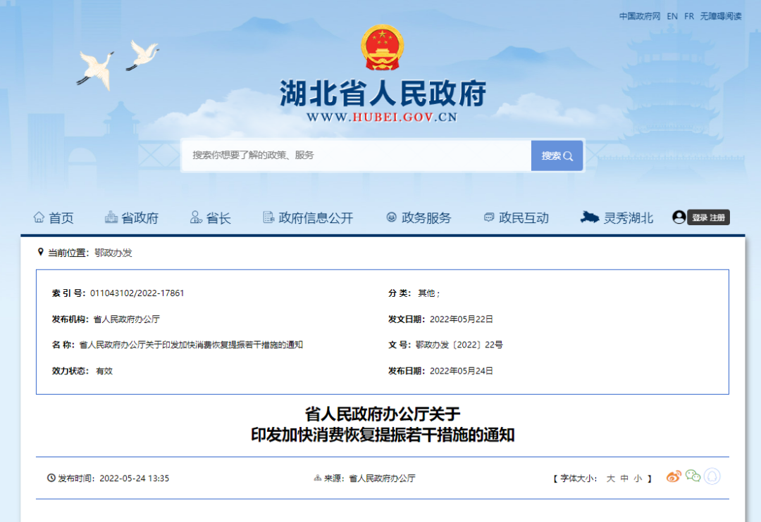 發放"惠系列"湖北消費券。2022年6月至12月,圍繞住宿、餐飲、零售、文旅、體育等領域,分批次向省內居民 (包括省外來鄂人員)投放"惠購湖北”“惠游湖北""惠動湖北" 消費券,活躍消費市場。