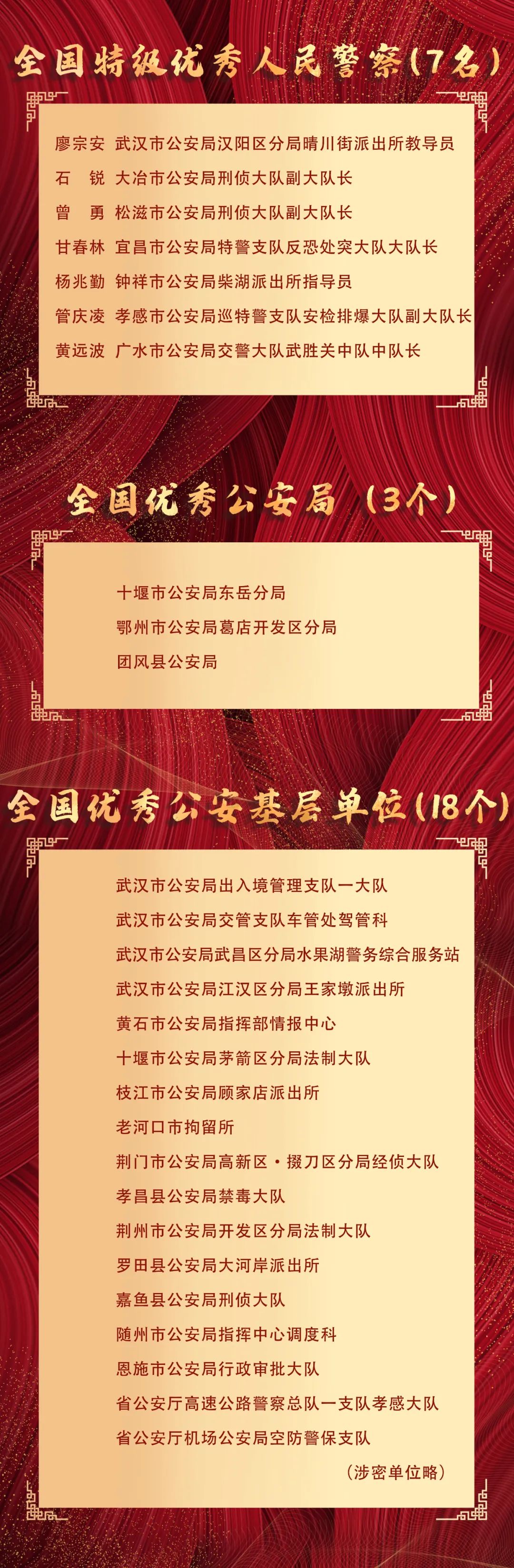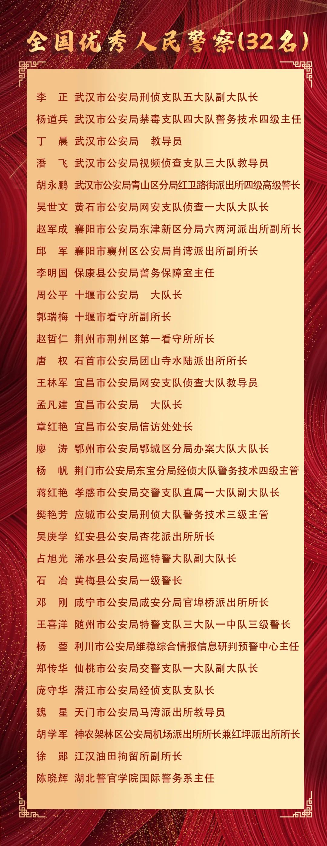湖北省公安系統(tǒng)表彰名單