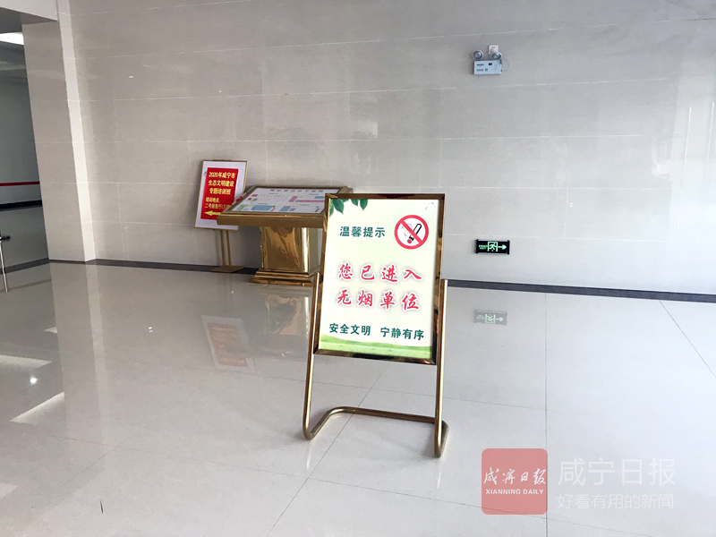 10月12日上午11時,記者來到咸安區應急管理局。一進大門,就聞到了煙味,大廳里,也沒有禁止吸煙的提示。