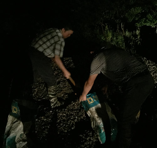 咸安向陽湖鎮40人打著手電筒深夜筑圍堰搶險成功