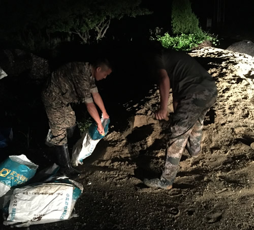 由于多日降雨,向陽湖圍垸南堤水位持續升高。7月5日下午13點30分發現5處散浸,當時在巡堤的奶牛場巡堤分隊立即向向陽湖圍垸分洪調蓄指揮部指揮長、區委常委、常務副區長顧興旺匯報,13點40分,區委常委、常務副區長顧興旺,區委常委、人武部政委楊亞斌,奶牛場黨委書記王仁家立即率領班子成員及搶險突擊隊隊員40人打著手電筒對南堤進行搶險。由于缺乏有效的照明條件,大家趁著微弱的手電光,填沙袋、筑圍堰,爭分奪秒。截止今日凌晨,險情排除。