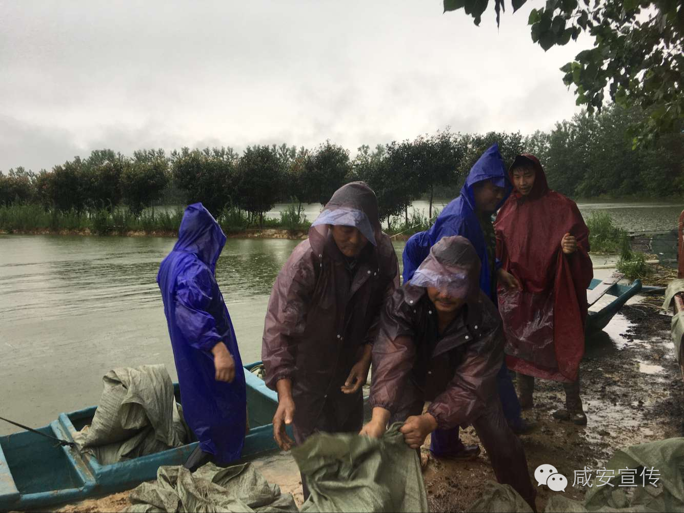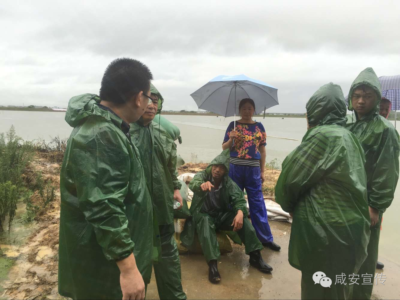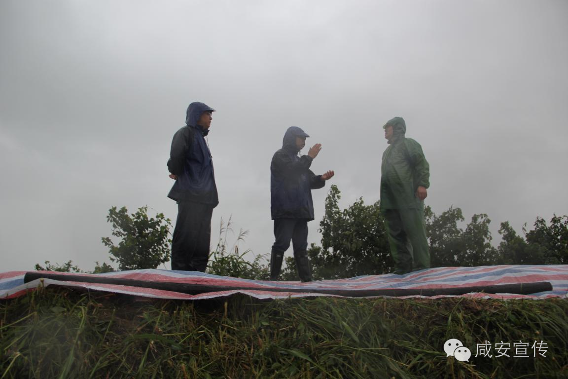 咸安官埠橋鎮100余人上堤護壩冒雨防汛菜籽海大堤