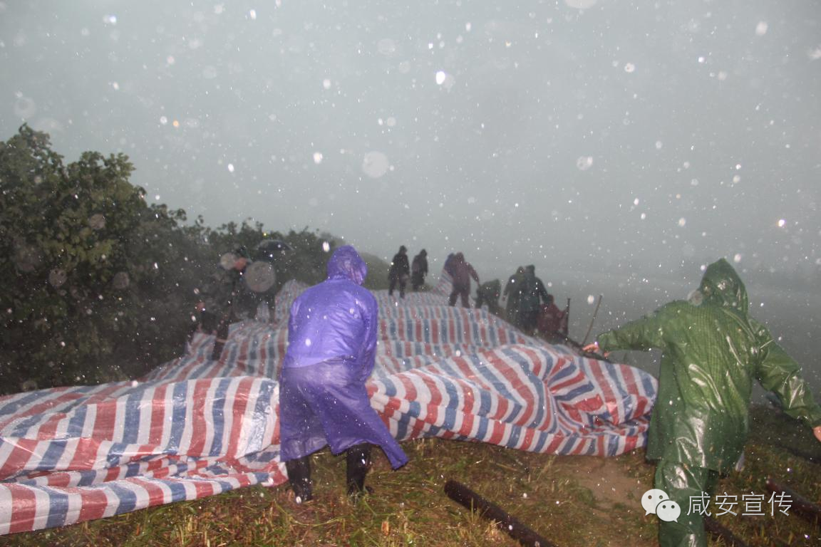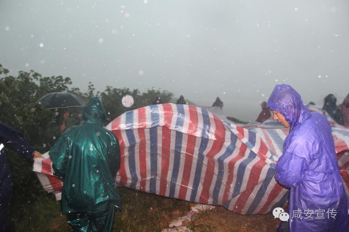 7月6日上午7時至9時,天氣突變,豆大的雨滴從天而降,狂風暴雨洗刷著菜籽海大堤,官埠橋鎮迅速組織100余名勞力上堤護壩。