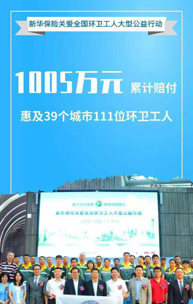 截至2019年6月30日, “城市因你而美·新華伴你而行—新華保險關愛全國環衛工人大型公益行動”共計完成理賠82例,累計賠付738...