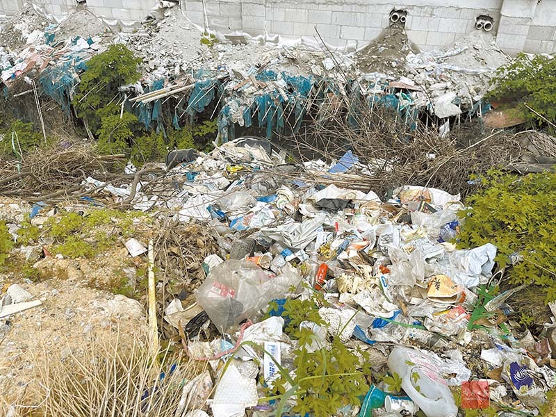 記者還發現,施工場地內部儼然成為大型垃圾場,里面大量生活垃圾、白色垃圾、建筑垃圾混合在一起,觸目驚心,不忍直視。此外,還有部分工人未佩戴安全帽。