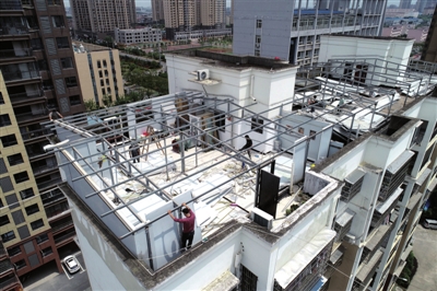 該小區(qū)三幢高層樓頂違建的鋼構(gòu)棚亭面積約有1700㎡,不僅占用樓頂公共空間,還存在嚴(yán)重安全隱患。