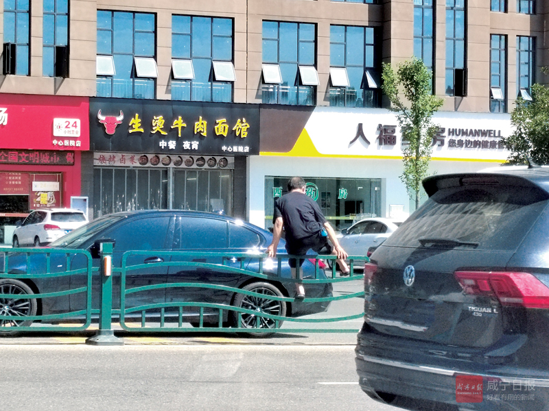 9時(shí)53分,一名身穿深藍(lán)色短袖、黑色短褲的老年人,在站臺(tái)等了一會(huì)車,發(fā)現(xiàn)站錯(cuò)方向后,徑直穿過馬路準(zhǔn)備翻越護(hù)欄抄近路,只見他先是左右張望觀察車輛,而后待車輛變少后縱身跨了過去,看得人膽戰(zhàn)心驚。其實(shí),在不到50米的地方就有斑馬線。