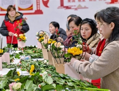 3月6日,咸安區永安街道西大街社區新時代文明實踐站組織開展“凝聚巾幗力量,涵養清廉家風”三八婦女節插花主題活動。