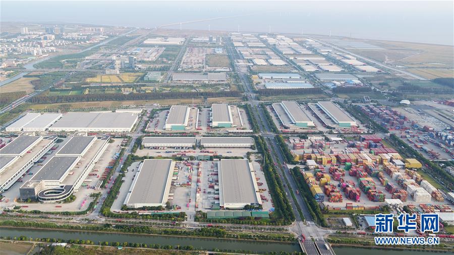 10月24日無人機拍攝的中國(上海)自由貿易試驗區臨港新片區一角。 新華社記者 丁汀 攝