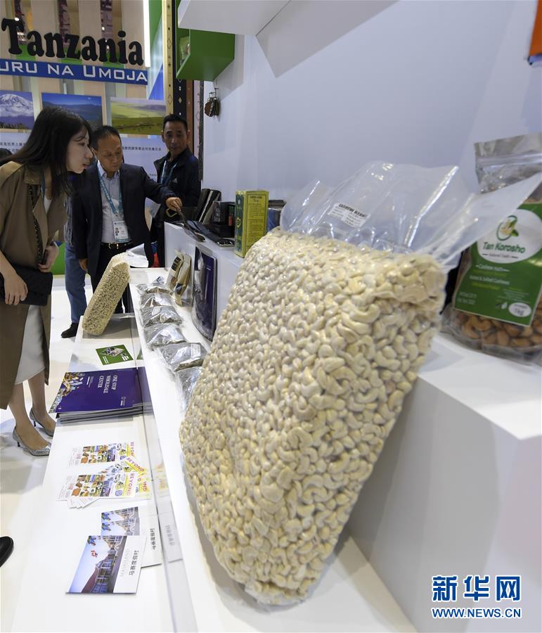 這是在第二屆進博會坦桑尼亞國家館拍攝的腰果產品(11月6日攝)。 新華社記者 范培珅 攝