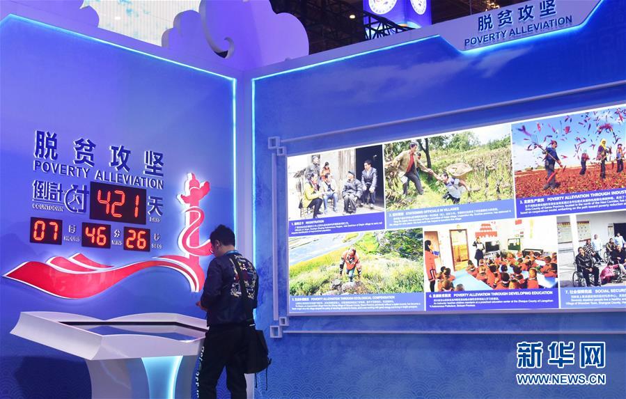 11月6日,觀眾在第二屆進博會中國館“美麗中國”單元脫貧攻堅倒計時顯示屏前參觀。 新華社記者 魏海 攝