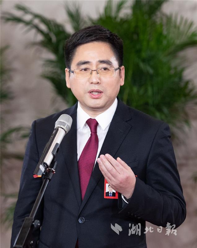 石必成代表回答記者提問。湖北日報全媒記者 柯皓 魏錸 攝