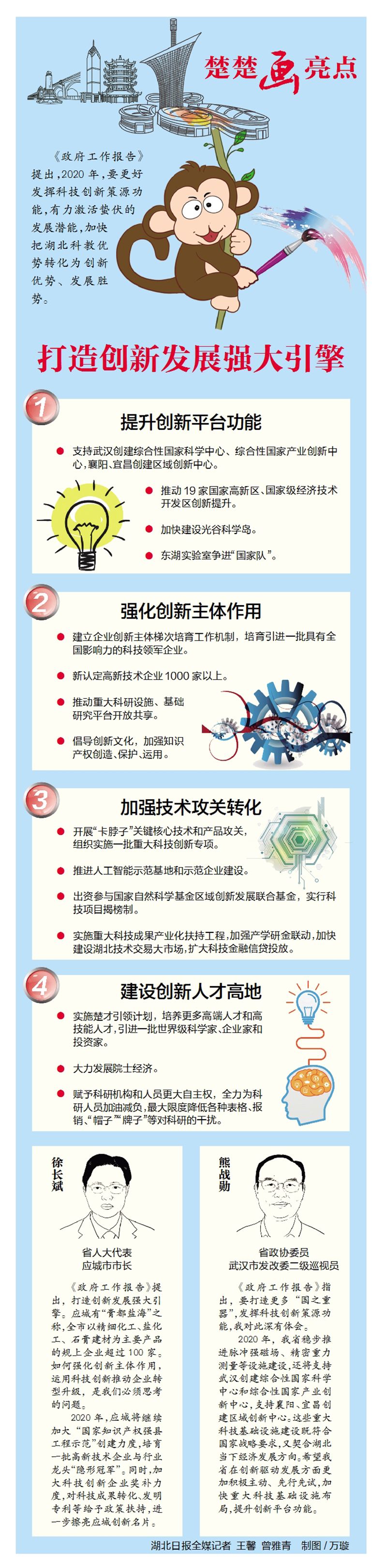 支持武漢創建綜合性國家科學中心、綜合性國家產業創新中心,襄陽、宜昌創建區域創新中心。