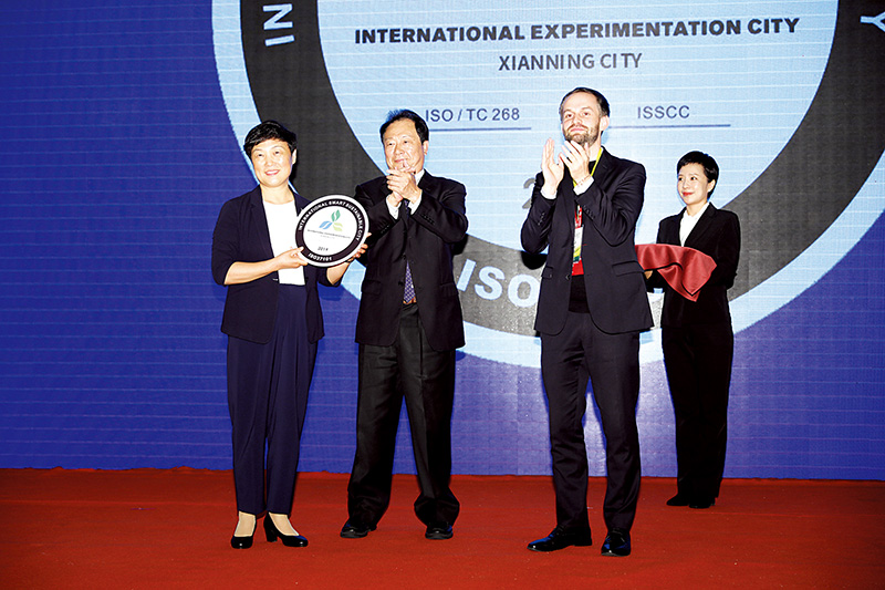 ISO/TC268秘書長埃蒂安·卡約、省市場監管局副局長詹永杰為咸寧“城市可持續發展國際標準試點城市”授牌