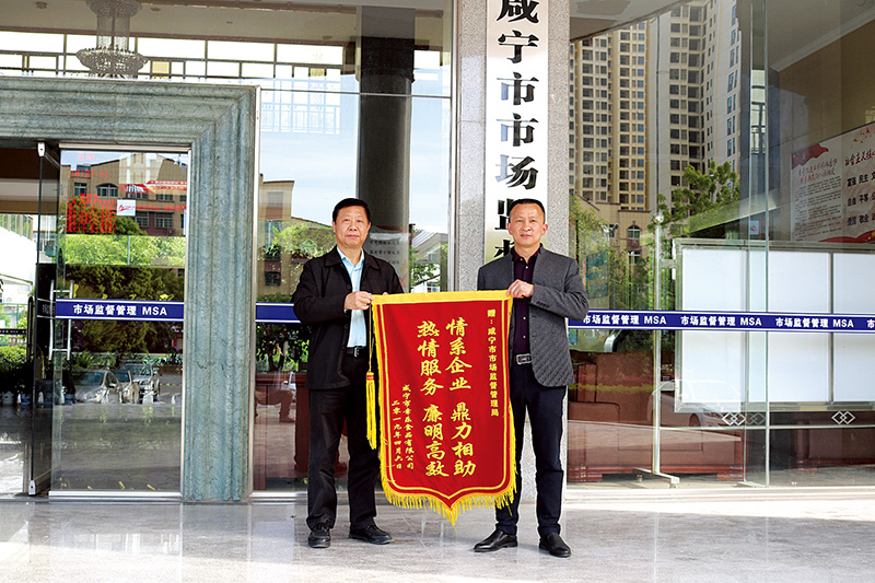 2019年4月16日,咸寧幸樂食品有限公司(王子蛋糕)董事長劉克勇將一面錦旗送到市市場監管局,對該局的真誠、貼心、快捷服務表示衷心的感謝。錦旗上寫著:“情系企業 鼎力相助;熱情服務 廉明高效”。