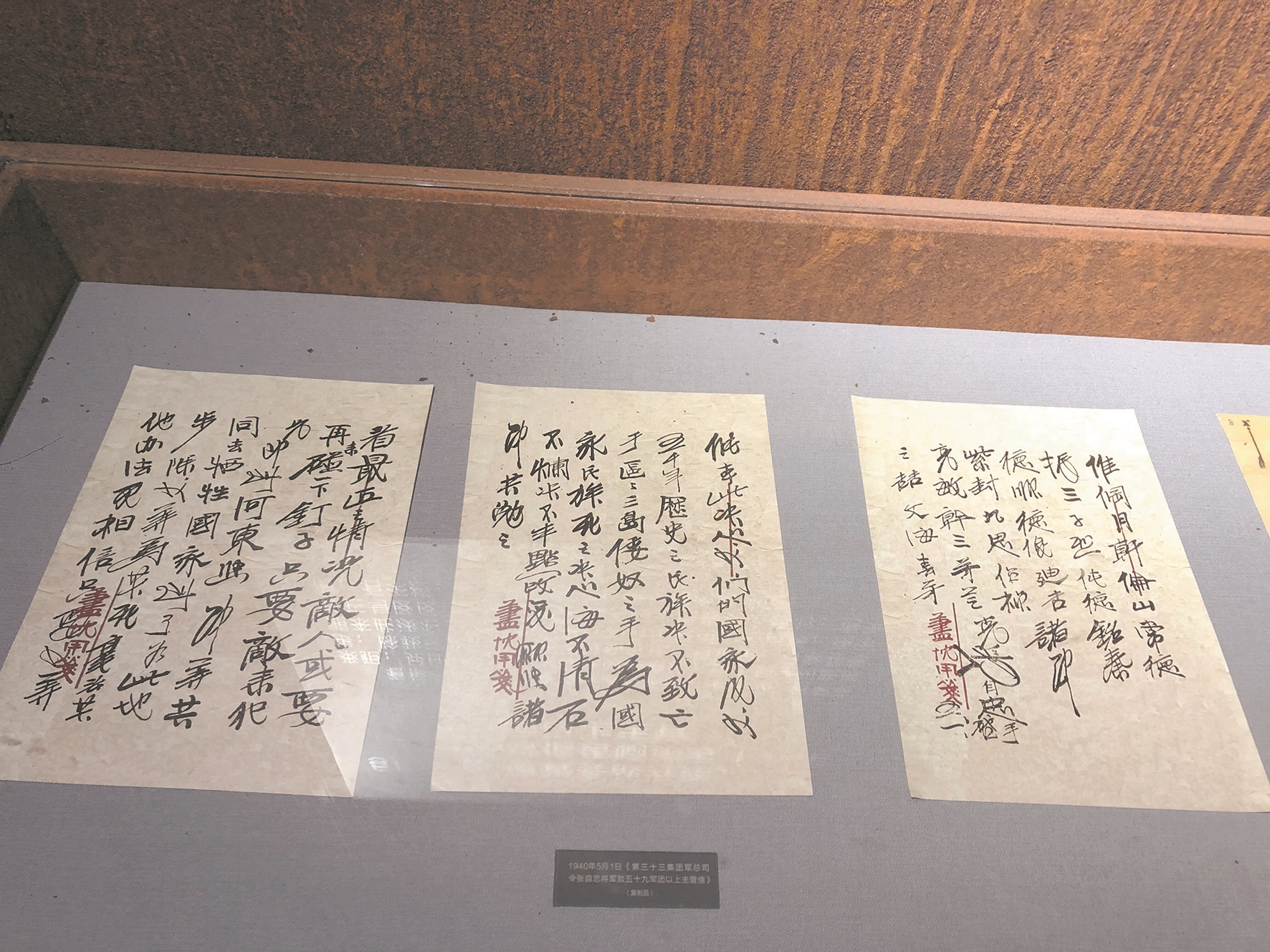 在一樓展室,記者見到了張自忠生前留給親人和戰(zhàn)友的部分書信,封封都是遺囑,每份都表述必死的決心,展現出視死如歸的大無畏英雄氣概。