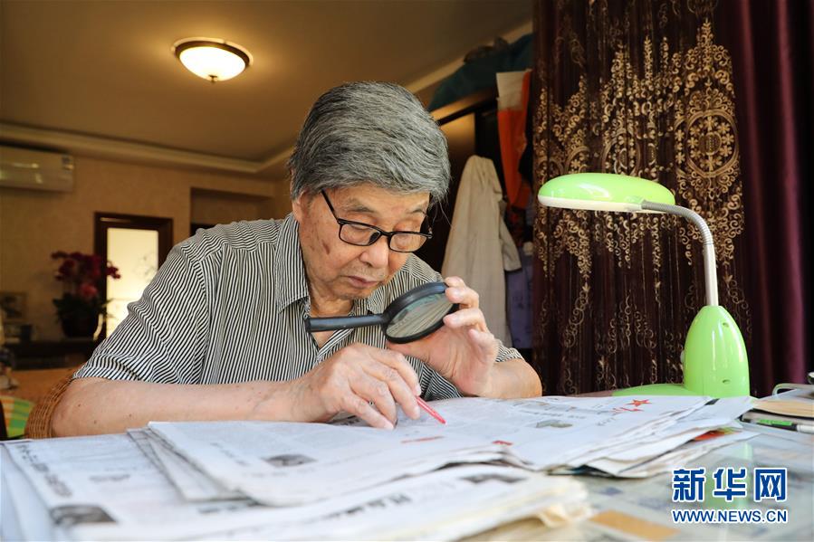 蔡興海在家中閱讀報紙(2019年6月13日攝)。 新華社記者 琚振華 攝