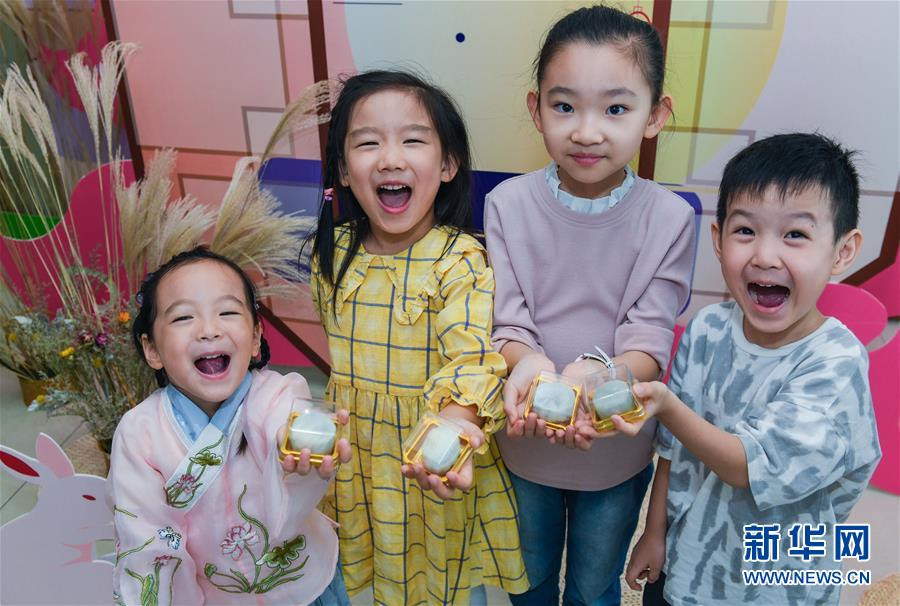 9月26日,參加活動(dòng)的孩子們展示他們做的冰皮月餅。 當(dāng)日,浙江省慈溪市錢海軍志愿服務(wù)中心的青年志愿者們與當(dāng)?shù)毓?huì)組織共同開展了一次自制手工月餅的親子活動(dòng),邀請(qǐng)100多名職工子女,在志愿者的指導(dǎo)下制作蘇式月餅和冰皮月餅,在快樂的氣氛中感受傳統(tǒng)民俗文化,迎接中秋節(jié)的到來(lái)。 新華社記者 徐昱 攝