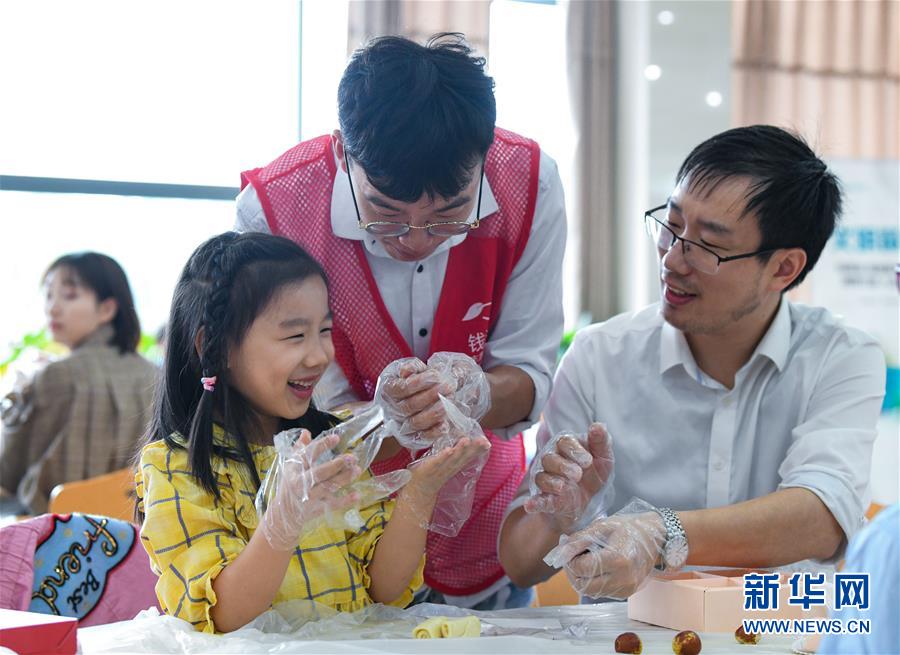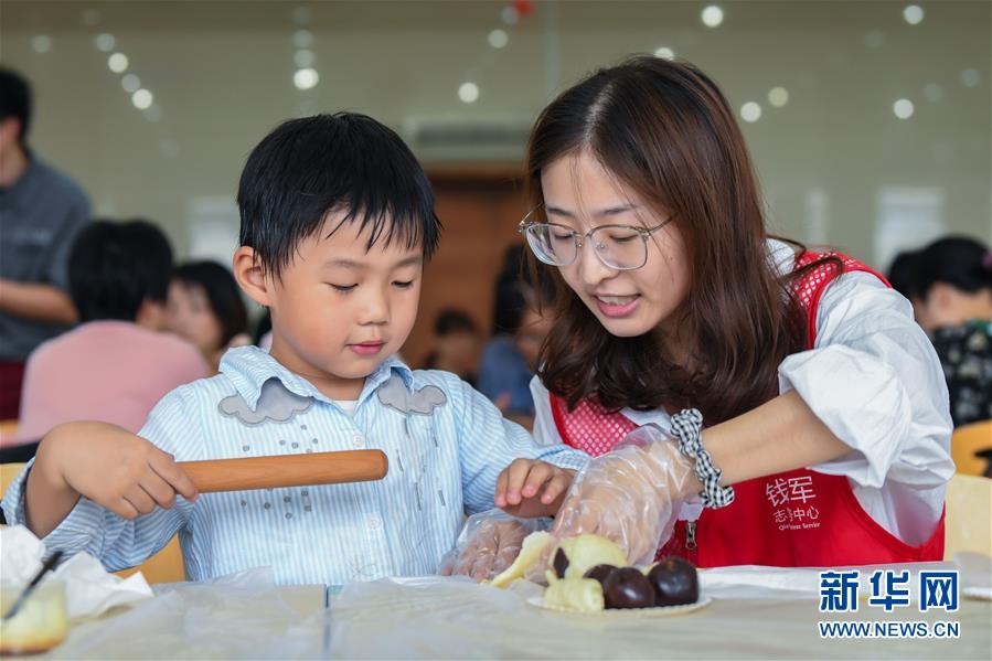 9月26日,志愿者指導(dǎo)小朋友制作月餅。 當(dāng)日,浙江省慈溪市錢海軍志愿服務(wù)中心的青年志愿者們與當(dāng)?shù)毓?huì)組織共同開展了一次自制手工月餅的親子活動(dòng),邀請(qǐng)100多名職工子女,在志愿者的指導(dǎo)下制作蘇式月餅和冰皮月餅,在快樂的氣氛中感受傳統(tǒng)民俗文化,迎接中秋節(jié)的到來(lái)。 新華社記者 徐昱 攝