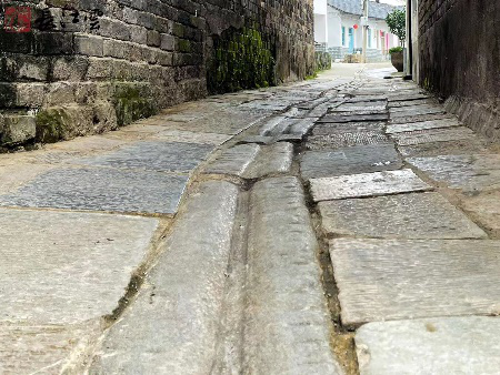 歷代雞公車(獨輪手推車)在古街留下的車轍印(周瑞騏 攝)