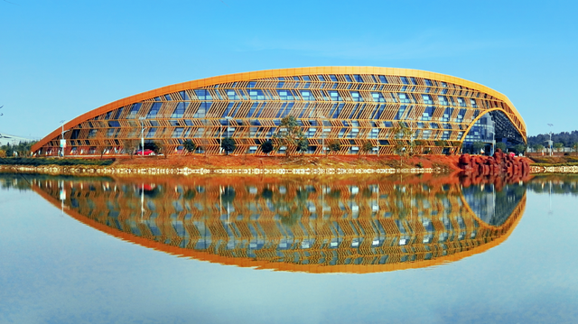 羊樓洞茶文化生態產業園的主體建筑在人工湖的倒映下呈一片茶葉狀,在湖面上熠熠生輝。產業園以“全茶產業產品開發+茶文化旅游”為核心,打造國內茶產業開發和茶文化旅游開發的全新發展模式。園區依托茶園自然生態景觀,以漢文化體系、三國赤壁文化體系、羊樓洞茶馬古道文化體系和茶產業園旅游文化體系為背景開發,建成“種茶、制茶、品茶、賞茶、買茶”為一體的現代化茶文化產業園。