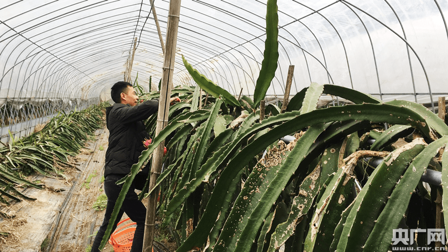 農業大戶胡江波采摘火龍果(央廣網記者 熊峰 攝)