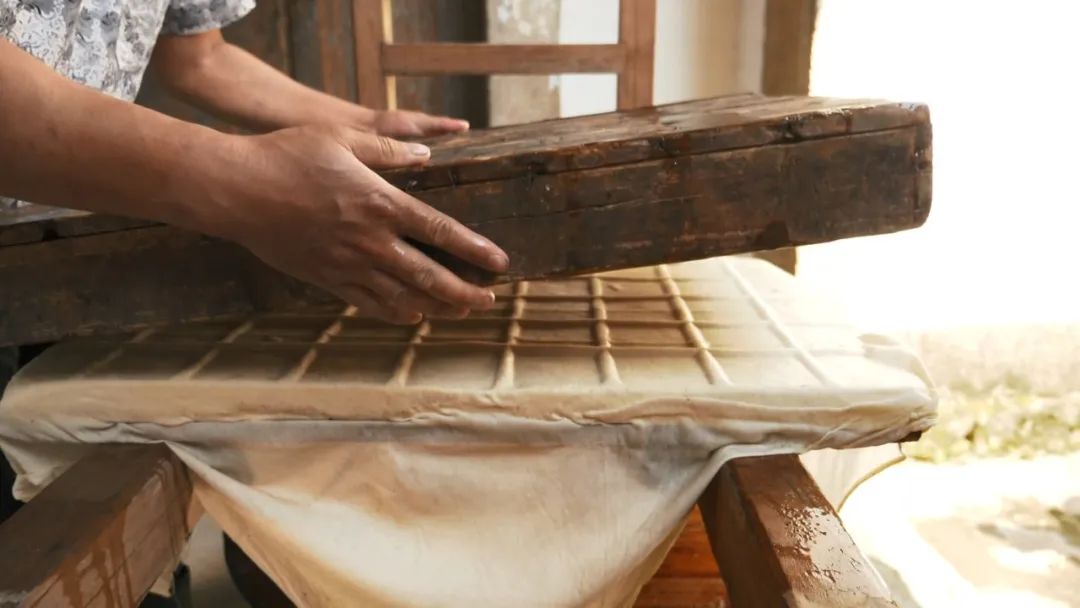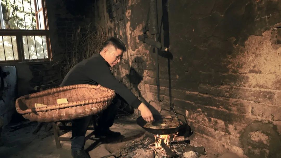 過(guò)濾后的生豆?jié){在廚房里燒煮直到沸騰。燒開(kāi)的豆?jié){裝缸后再被抬到堂屋,加入熟石膏,靜置一段時(shí)間就能生成豆腐腦。最后就是上架壓制豆腐干子了,這些其實(shí)都就是傳統(tǒng)豆腐的做法。